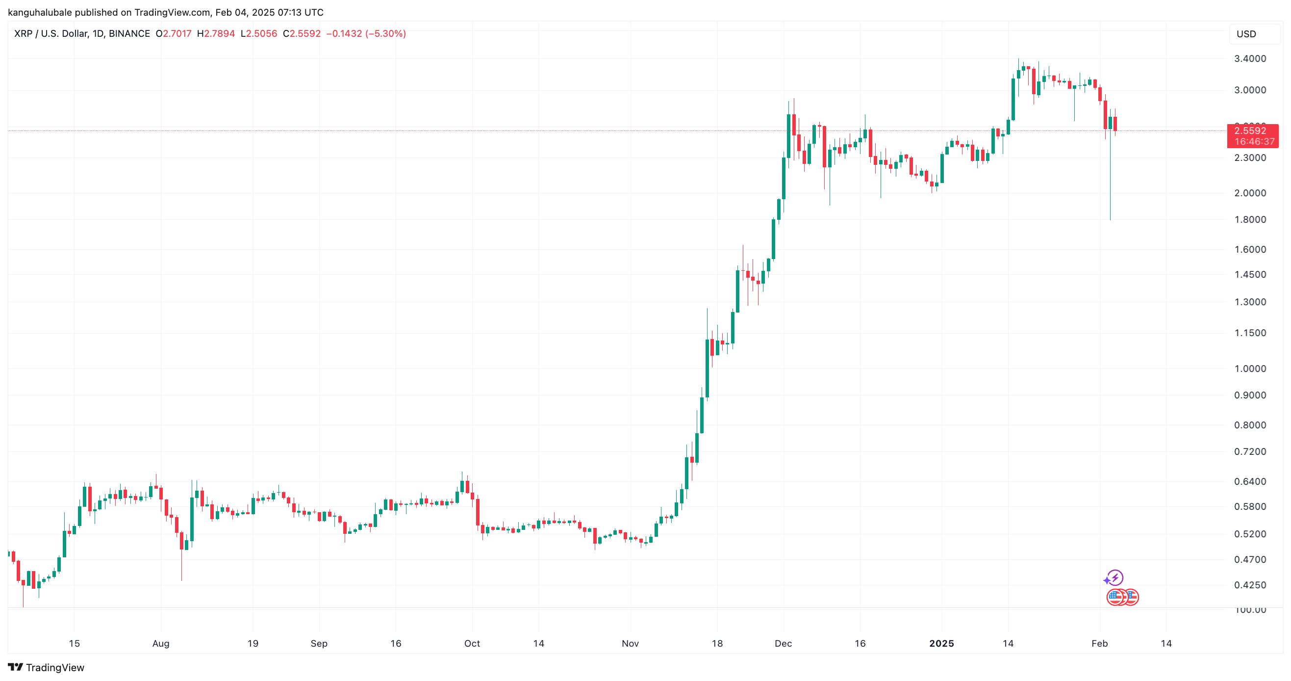 XRP is up more than 7% over the last 24 hours, bouncing from a low of $1.79 on the day before, rising as much as 55% to a high of $2.78 on Feb. 4, according to data from CoinBerg Markets Pro and TradingView.