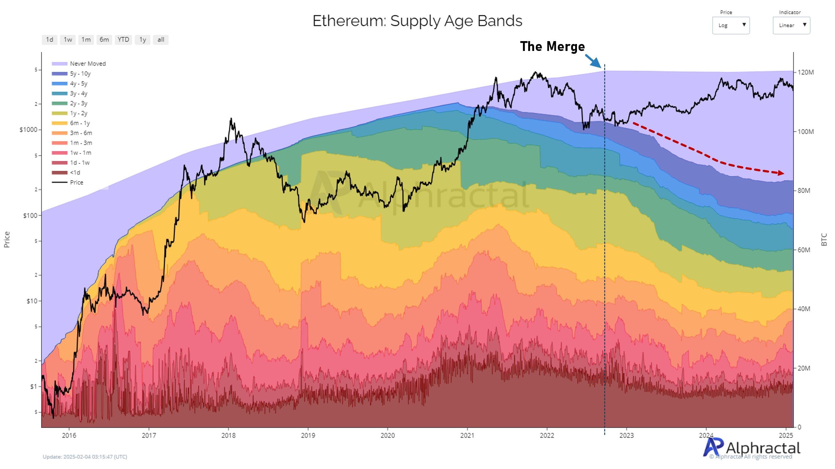 Ethereum’s long-term holders have reduced their exposure since the Merge, according to data shared by Joao Wedson, CEO of Alphractal.